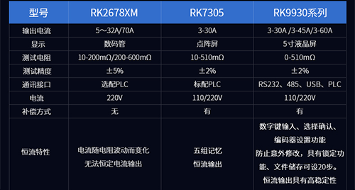 可選儀器:RK2678XM系列(電流30/32/70安培可選),程控機(jī)RK7305系列,RK9930系列(電流30/40/60安培可選),程控系列具備PLC信號(hào)輸出,RS232,RS485通訊功能。