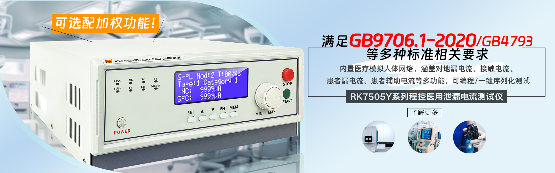 RK267系列,RK9910、RK9920系列耐壓(絕緣強(qiáng)度)測(cè)試儀符合GB4706.1,按電流類別分為單交流和交直流兩用兩類,