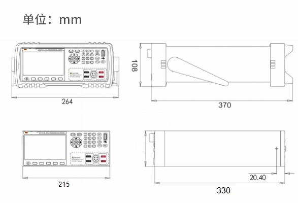 RK2518-4/RK2518-8/RK2518-16多通道精密電阻測試儀三視尺寸圖