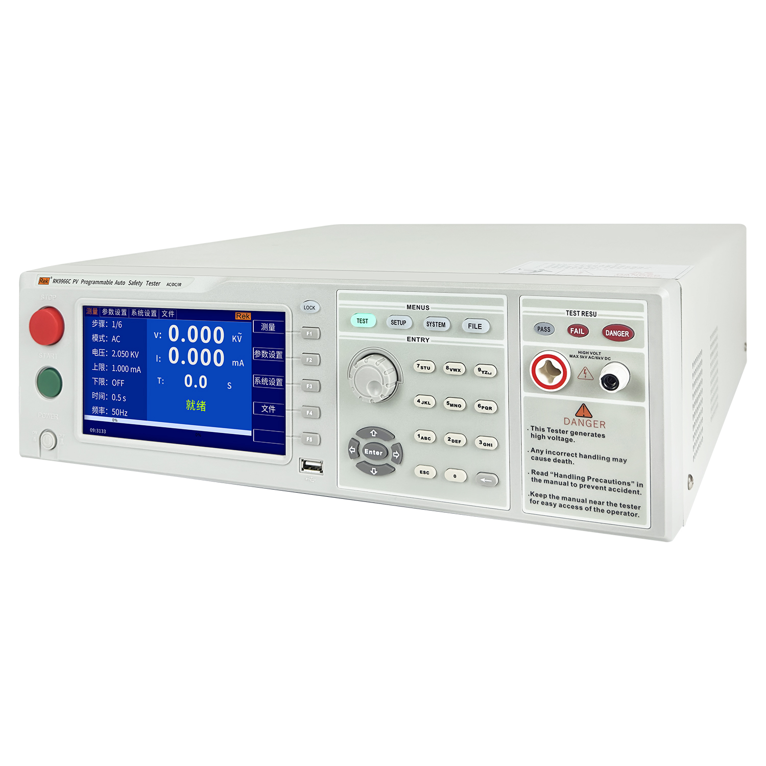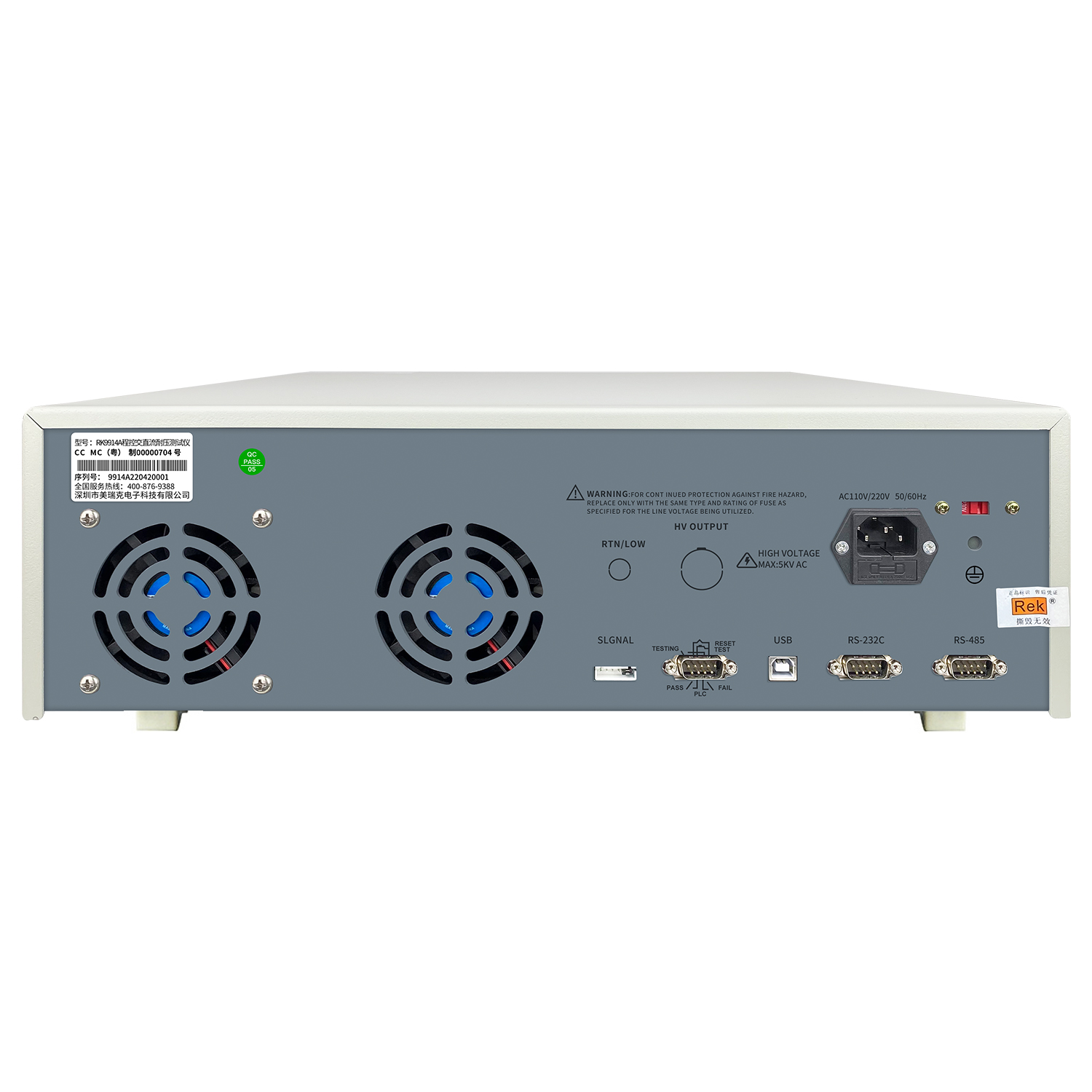 隨機標配附件 | 電源線RK00018、測試線RK26003A、 測試線RK00007、高壓棒8N+、RS232通訊電纜RK00002、RS232轉USB線RK00003、USB轉方口連接線RK00006、接線柱1套(紅/黑色)、上位機、防逆流盒 | |||