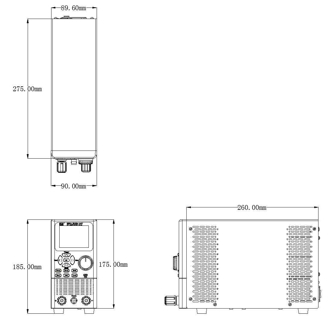 RK8510/RK8510A/RK8510B/RK8510C/RK8510D系列直流電子負(fù)載三視尺寸圖