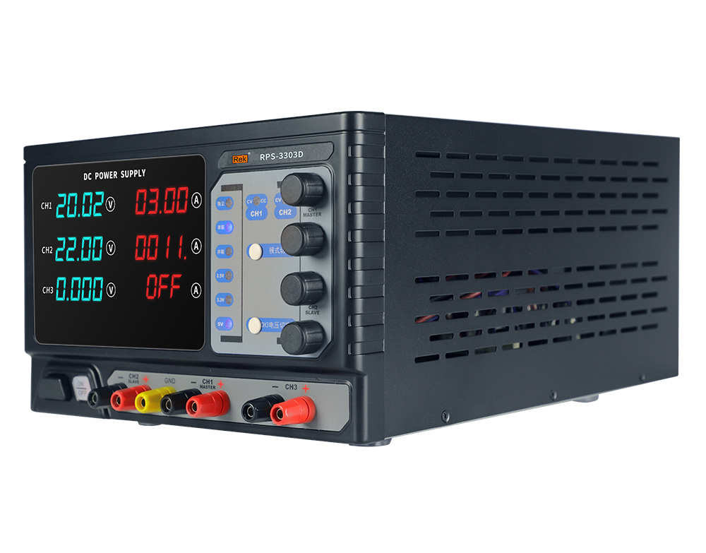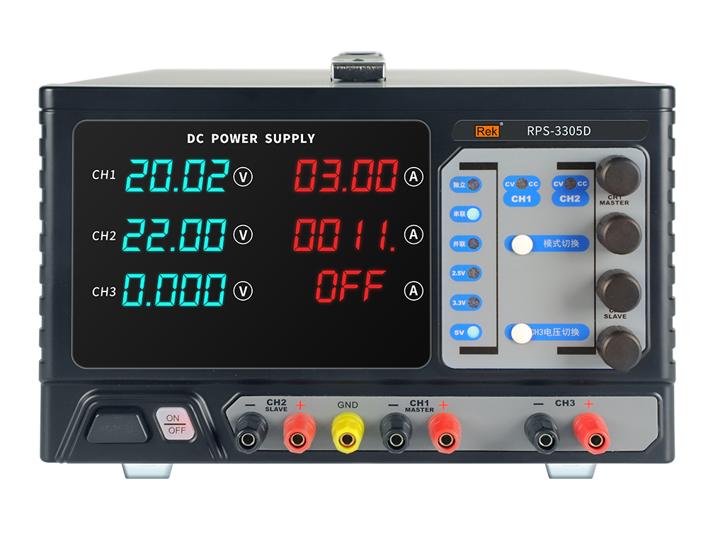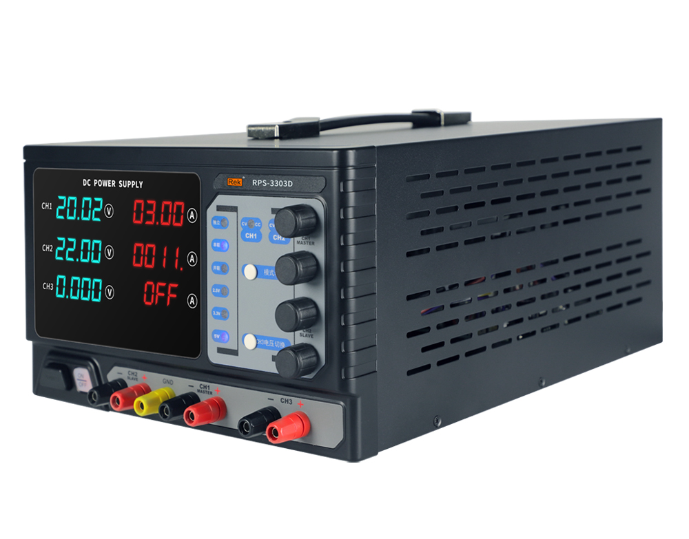 本系列產品有兩路可調輸出、一路固定輸出2.5V/3.3V/5V; 采用純銅環型變壓器,效率高,發熱小。無須外接連線即可實現主通道CH1、CH2間的串并聯,簡化連線,使測試更簡便。四位數碼屏顯示,
